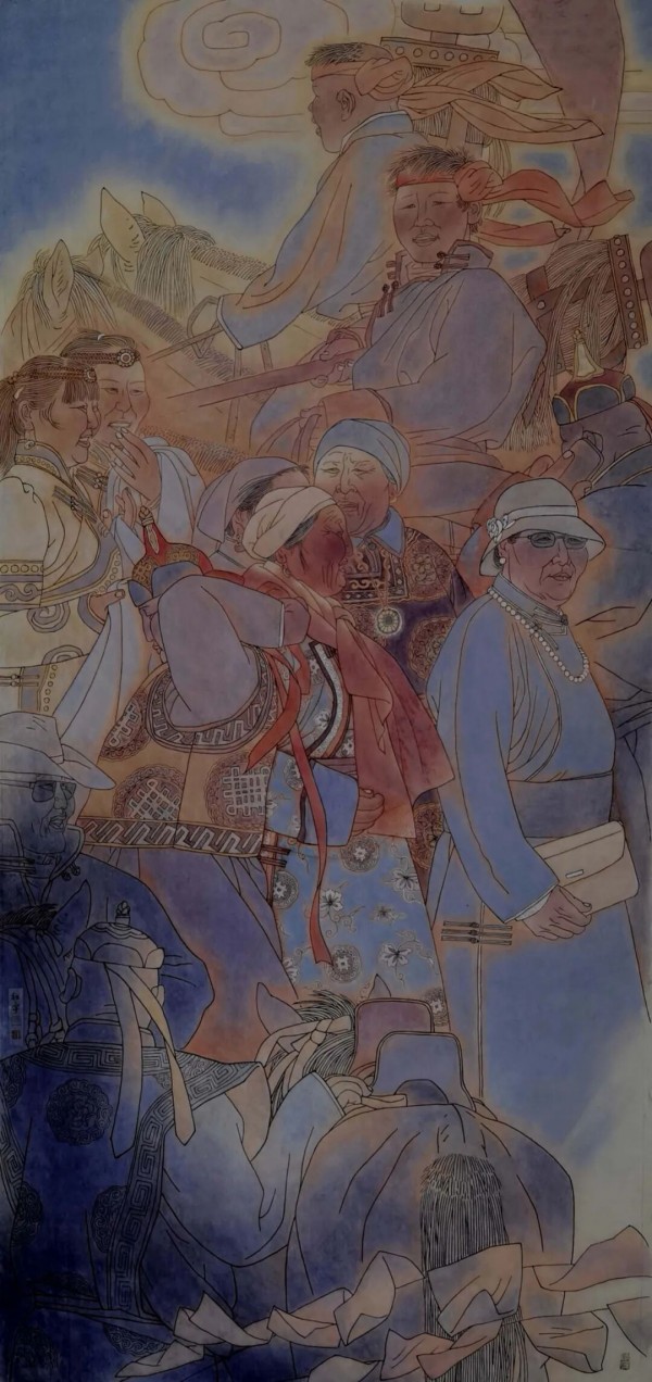 要红宇《相聚“那达慕”》中国画 230×110cm