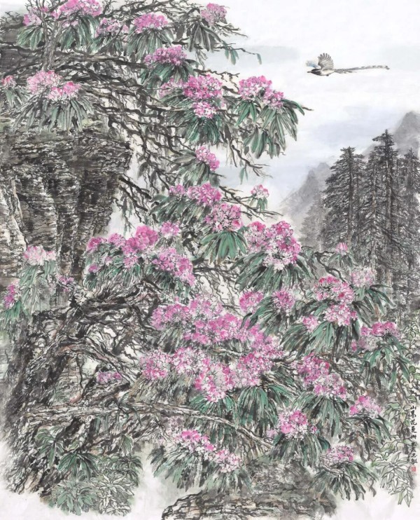 罗寒蕾《溪水随君向北流》中国画 48×72cm