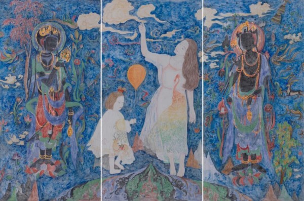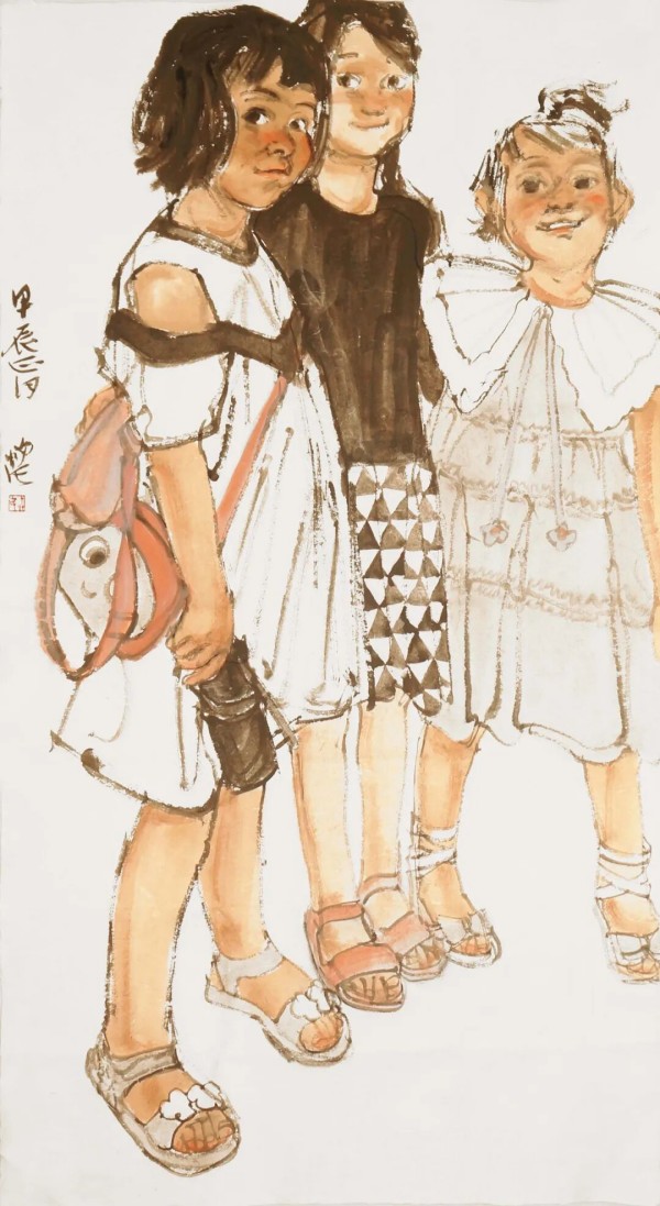 申卉芪《小古丽和她的朋友》中国画 180×97cm