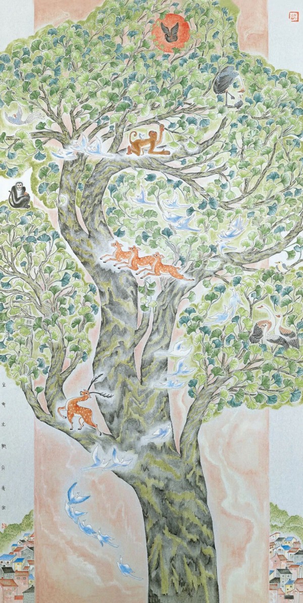 袁玲玲《开放的中国—文明·互鉴》中国画 230×200cm