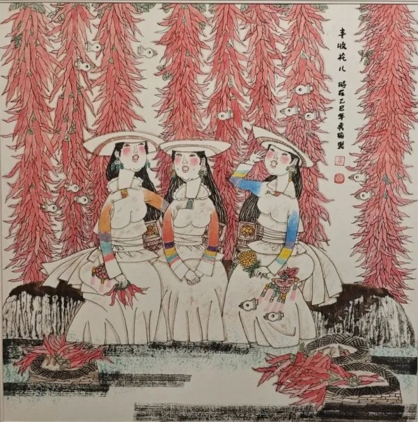 冯秀梅 《幸福花儿》 中国画 60X60cm 2025年