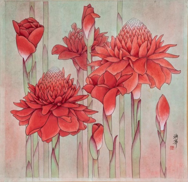 刘山花《留学中国-梅香》重彩70×70cm2022年