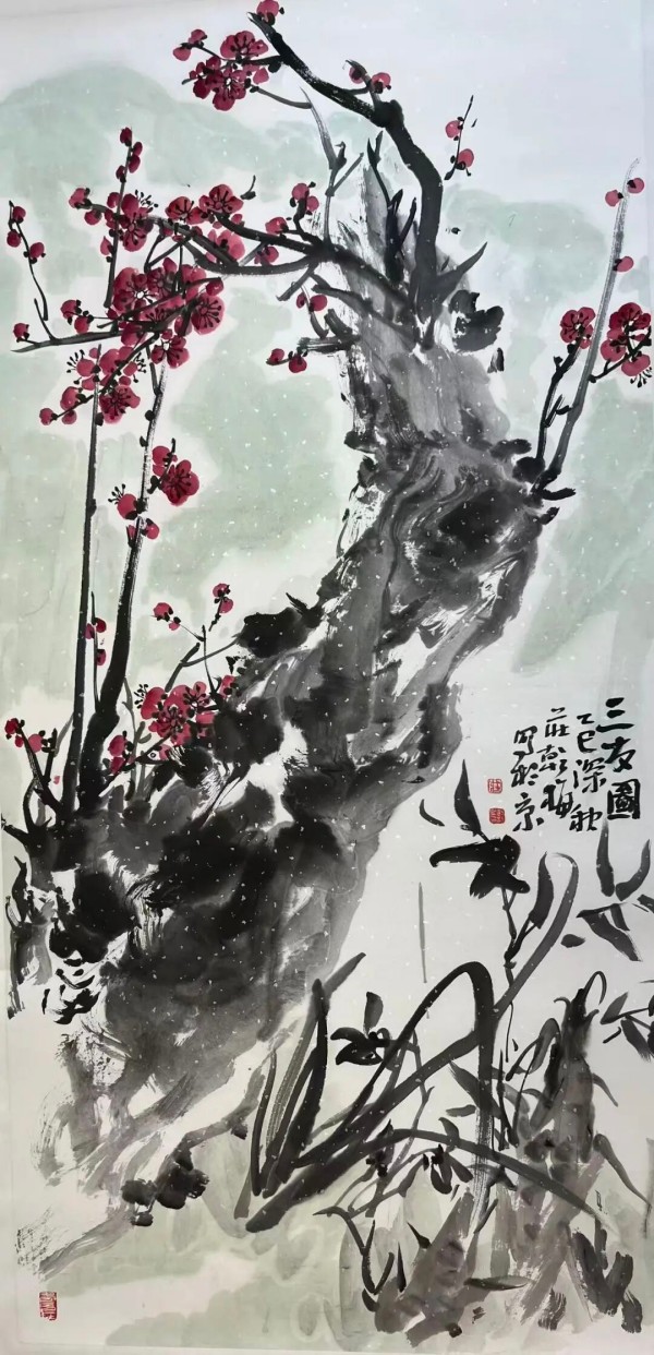 庄乾梅《三友图》中国画 68×136cm 2025年