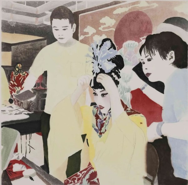 刘丽萍 《台前幕后》 水印木刻 60×60cm2024年
