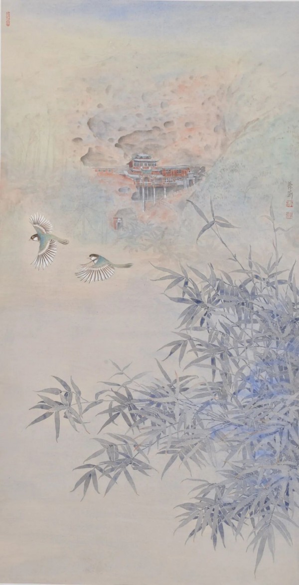 纪萍《竹报平安》中国画138x39cm2025年