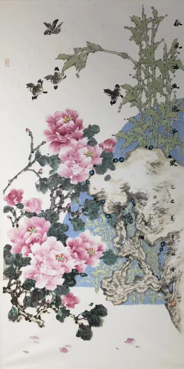 李丽平《春风拂槛露华浓》中国画