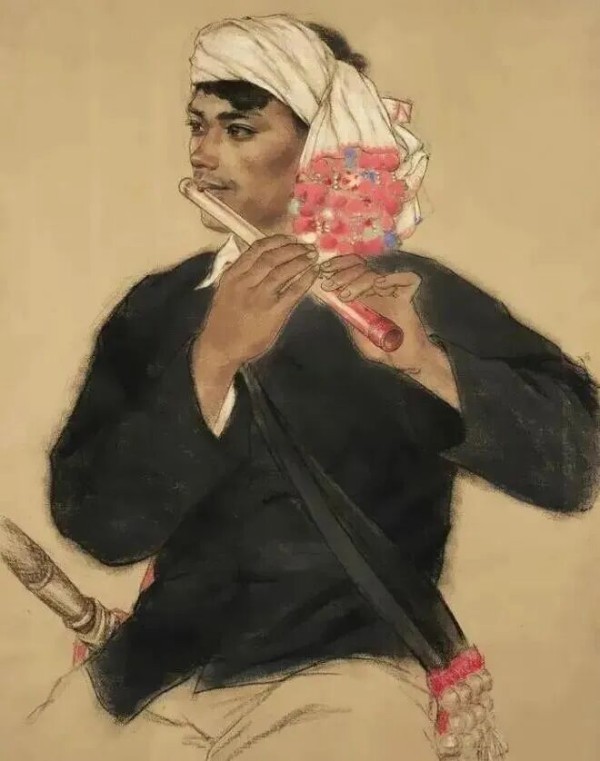蒋采苹《景颇族笛手》粉画,61.5×44cm,1977年