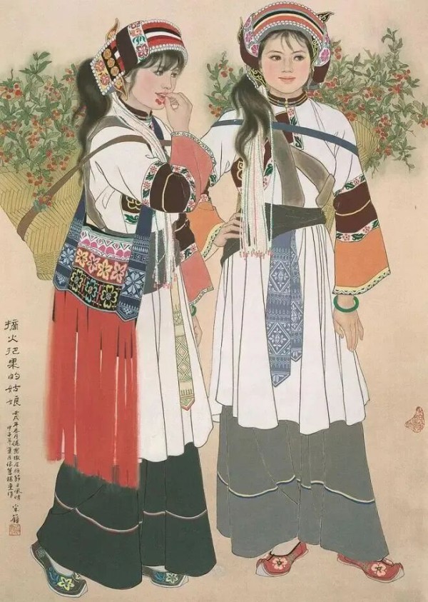 蒋采苹《摘火把果的姑娘》纸本,105cm×75cm,1982年