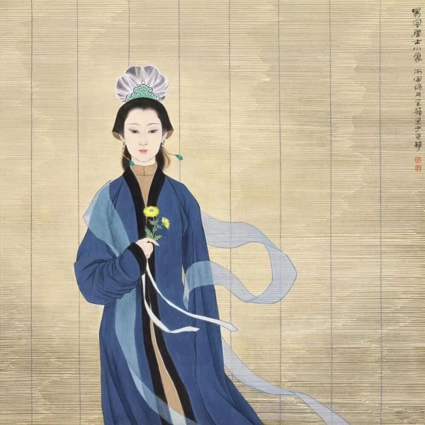 蒋采苹传承蒋兆和、叶浅予、李可染、李苦禅、郭味渠、潘絜兹、刘凌沧、黄均、王定理等先生教诲,深探壁画丹青的博大瑰丽,又取工笔重彩的精微细致,在“错彩镂金”与“芙蓉出水”的会通之间,以华采而不浮、清润而有力的画貌回应重彩画复兴的时代条件,重建工笔绘画语言的当代可能。