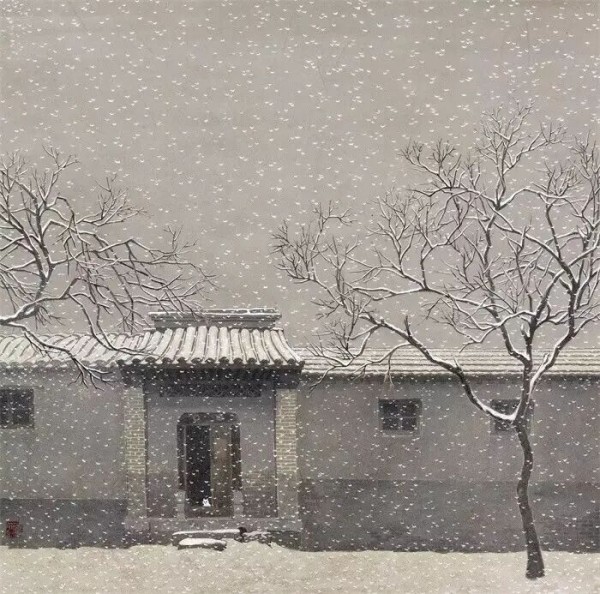 蒋采苹《北京的雪》工笔重彩,80×80cm,1989年,中国美术馆藏