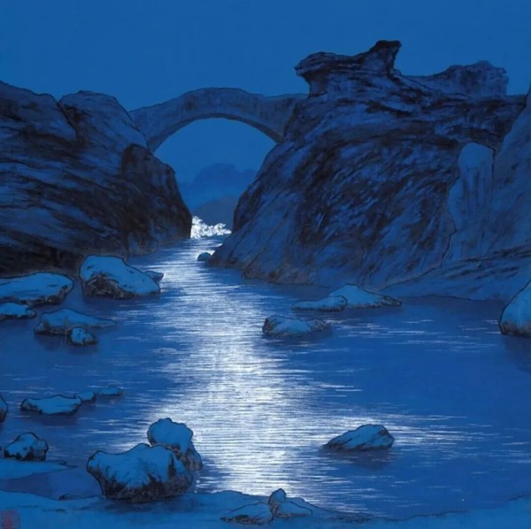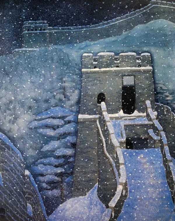 蒋采苹《雪夜长城》纸本,64×52cm,1989年