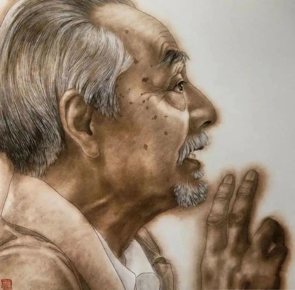 蒋采苹《叶浅予先生》纸本,67×67cm,1996年
