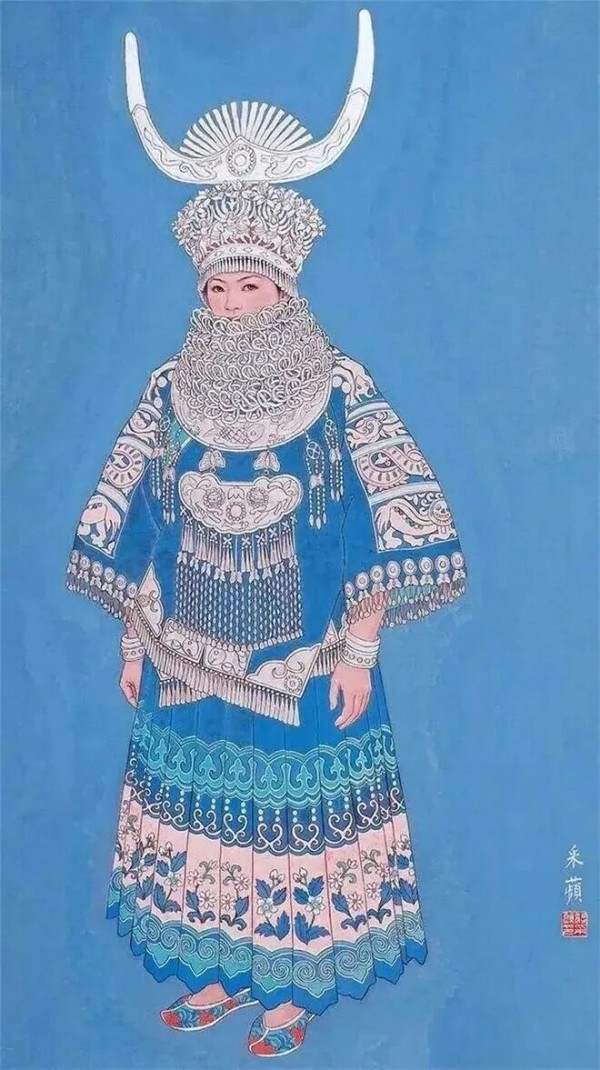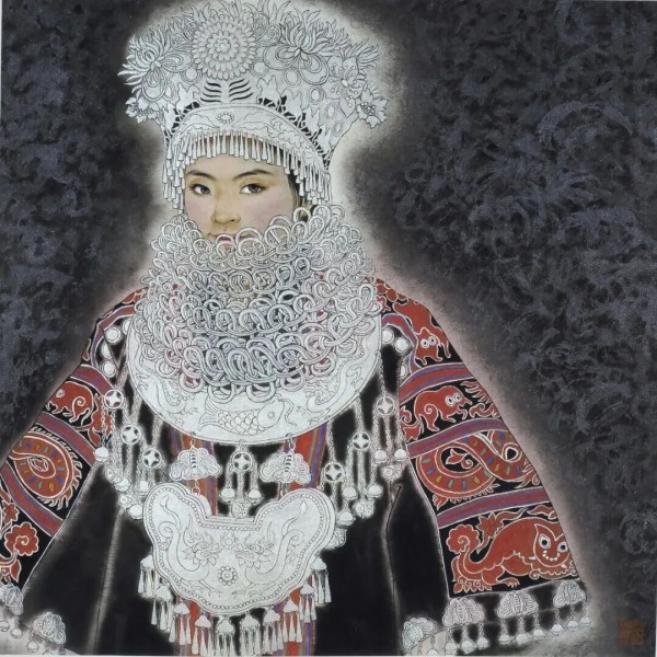 蒋采苹《盛妆苗女》纸本,67×67cm,1996年