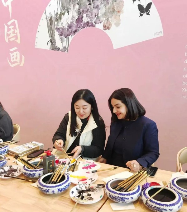 在中国画体验区,中国女画家协会四位老师积极参与交流互动,以书画艺术为纽带,与中外妇女代表亲切沟通,分享中国画的独特韵味与文化内涵,用艺术语言讲好中国故事、传播中国声音,助力中外妇女相知相亲、互学互鉴。