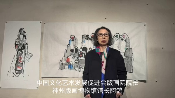 中国文化艺术发展促进会版画院院长、神州版画博物馆馆长阿鸽女士发来祝贺视频