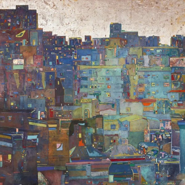 郝雨晴 《华灯初上》 160×160cm 综合材料绘画 黑龙江