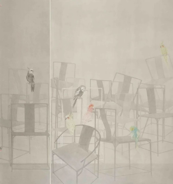 韩耀凌 《秾华深处憩幽禽》 230×190cm 中国画 山东