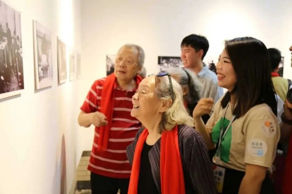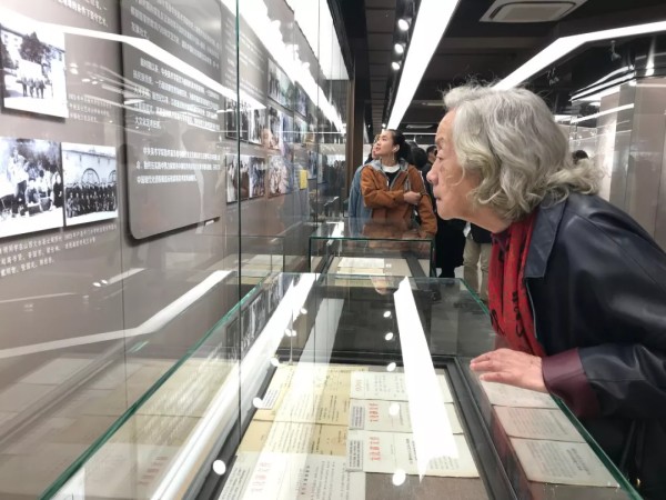 2018年4月3日,蒋采苹在校庆活动中参观中央美术学院校史馆