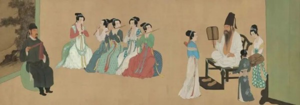 蒋采苹《临(传)五代顾闳中〈韩熙载夜宴图〉》(局部)绢本设色,28cm×77cm,1958年