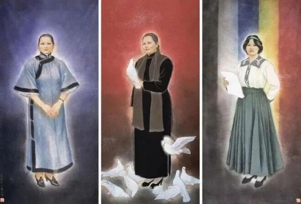 蒋采苹《宋庆龄光辉一生》纸本,186×99cm×3,1991年