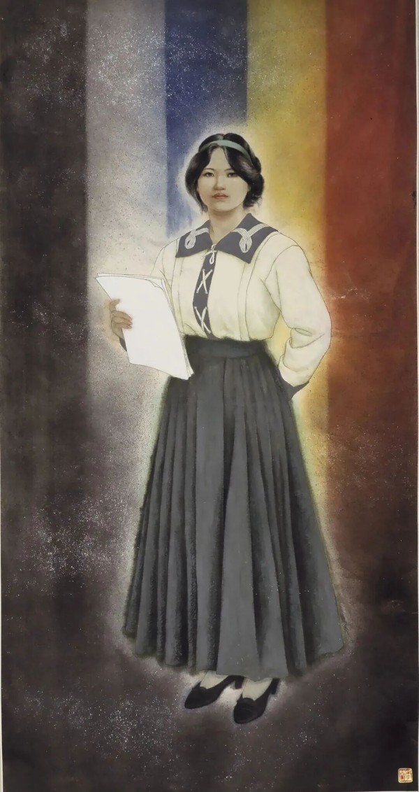 蒋采苹《秋瑾烈士像》纸本,80×80cm,1992年