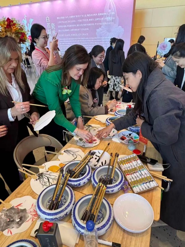 在中国画体验区,中国女画家协会四位老师积极参与交流互动,以书画艺术为纽带,与中外妇女代表亲切沟通,分享中国画的独特韵味与文化内涵,用艺术语言讲好中国故事、传播中国声音,助力中外妇女相知相亲、互学互鉴。