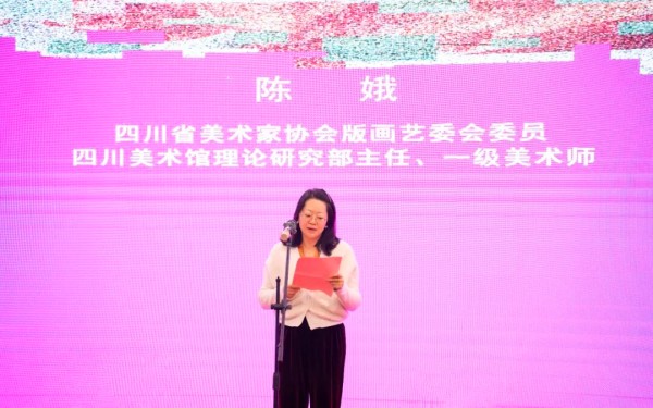 四川省美术家协会版画艺委会委员、四川美术馆理论研究部主任、一级美术师陈娥女士代表参展女画家致辞